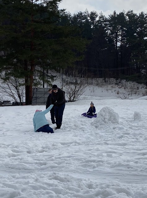 This was such a fun day! We ventured up to a ski slope that was a couple hours drive away. We were able to rent a couple of sleds, and find a nice little hill where the kids played until they were all soaked to the bone. The snow was quite wet, so the getting soaked part happened a lot faster than we'd planned. Still, every had a great time!